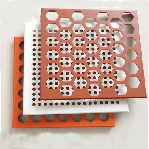 沖孔鋁單板采用電腦數控沖壓設備,選用國際標準鋁材熱軋優質鋁合金板材為基材,以不同規格或花款的沖孔工藝來美化鋁面板,能舒緩由于封閉式所造成的壓抑感,若隱若現,開闊視野空間感觀性。穿孔鋁單板系列擁有多款花樣組合,更可根據客戶要求定做。